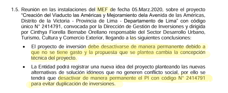 En marzo de 2020, una reunión oficial en el Ministerio de Economía y Finanzas concluyó que el proyecto debía ser desactivado permanentemente.
