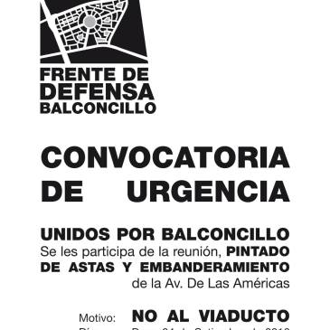 Estimados vecinos Se hace extensiva la convocatoria para la pinta de las astas y el embanderamiento de la Avenida de Las Américas. Domingo 4 de setiembre de 2016 Hora de la convocatoria: 08 de la mañana ¡NO AL VIADUCTO!